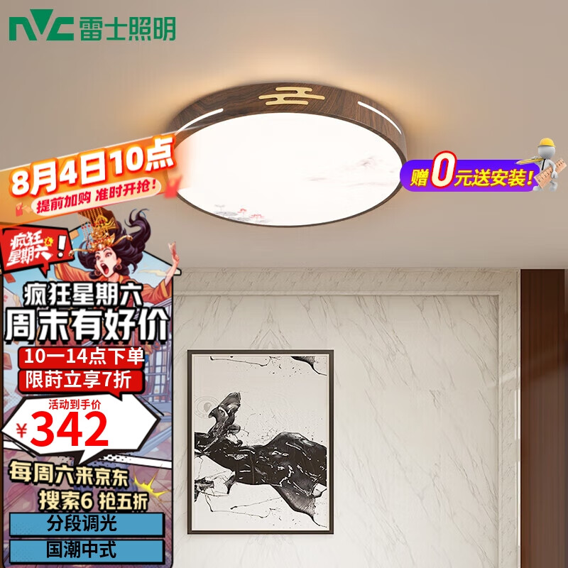 雷士(NVC)LED吸顶灯客厅餐厅卧室灯铁艺复古新中式大气圆灯WHXD36F/F-20价格:488.00元!