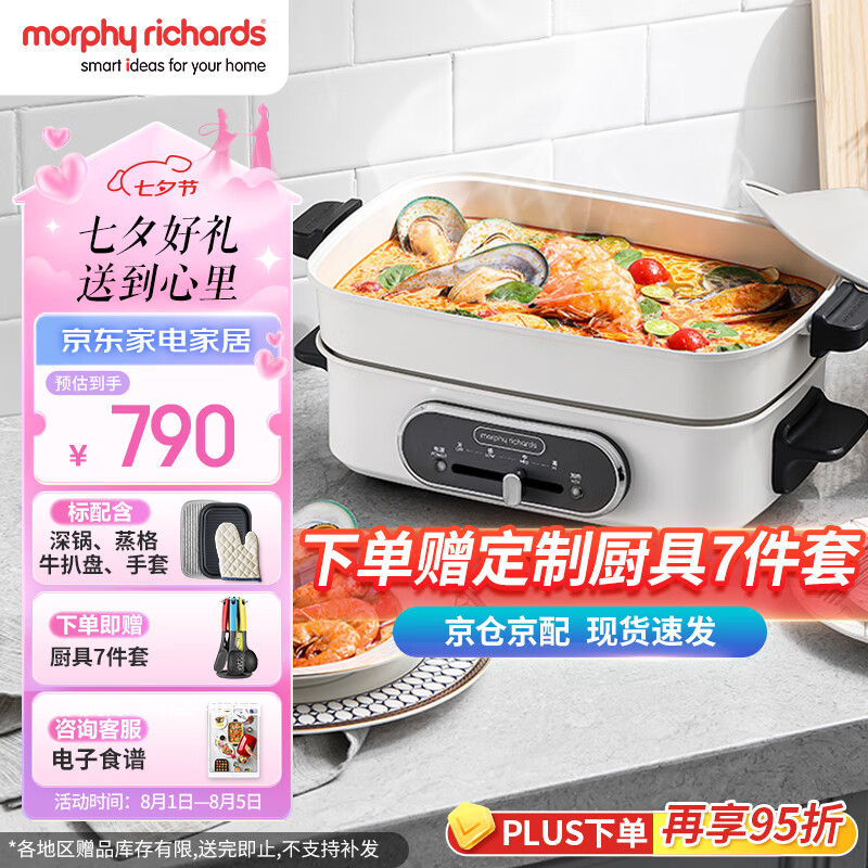 摩飞电器(Morphyrichards)多功能锅 家用多用途锅 电火锅电煮锅电蒸锅电热锅 2.5升 火锅锅 MR9088 富士白价格:771.00元!