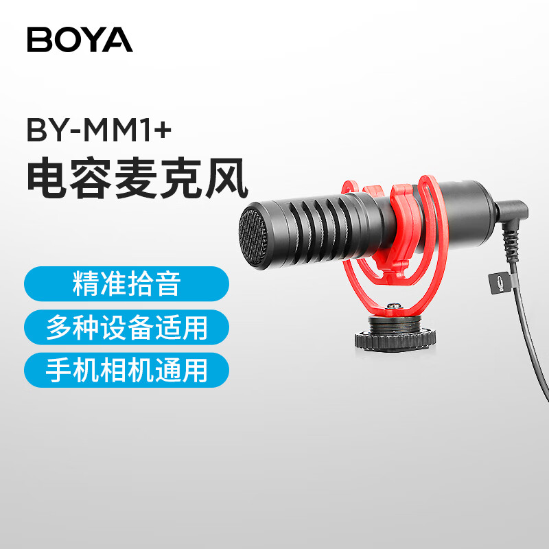 BOYA 博雅麦克风 BY-MM1+手机直播超心型指向电容麦克风 Vlog短视频相机收录音机顶麦外接便携小话筒价格:271.06元!