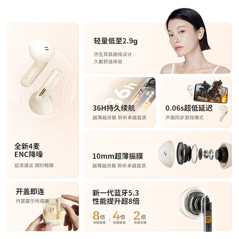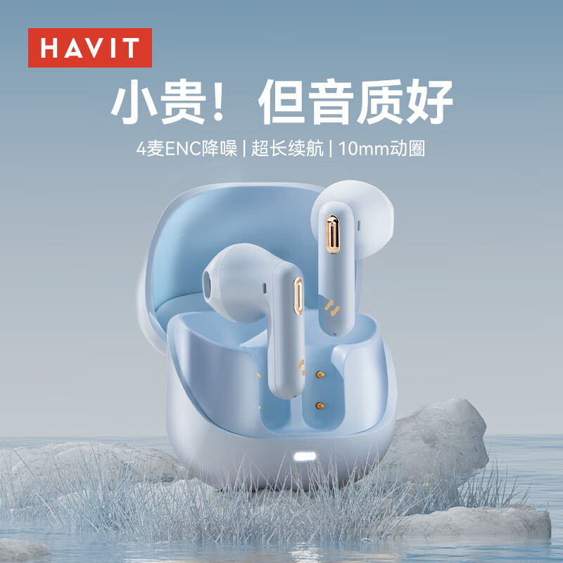 海威特(HAVIT)真无线半入耳式蓝牙耳机音乐游戏运动耳机通话降噪低延迟长续航通用苹果小米华为手机 梦境蓝价格:119.00元!