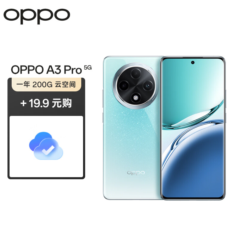 OPPO A3 Pro 8GB+256GB 天青 耐用战神 满级防水 360°抗摔 四年耐用大电池 5G AI手机【云空间套装】价格:2018.90元!