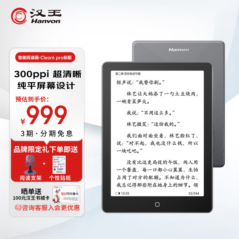 汉王(Hanvon)Clear6Pro电子书阅读器 6英寸墨水屏电纸书平板 智能阅读本 学习笔记本 看书学习电子纸 轻量便携价格:999.00元!
