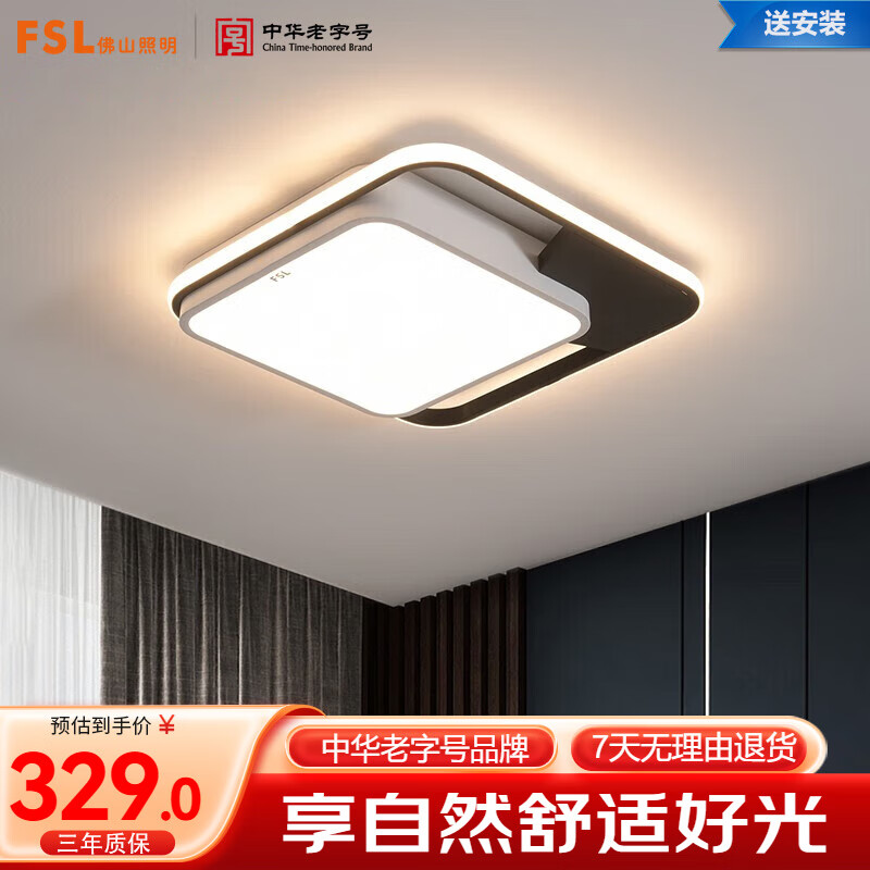 FSL佛山照明吸顶灯LED卧室灯北欧后现代铁艺灯具双色调光50421/36W方价格:359.00元!