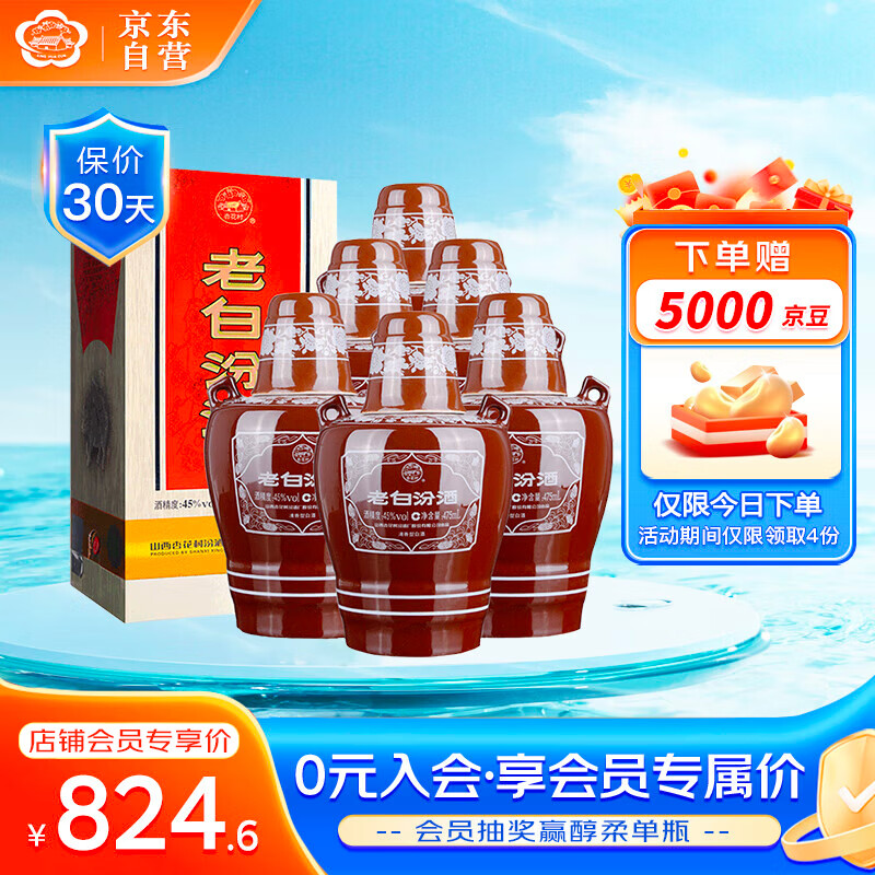 汾酒 老白汾10 清香型白酒 45度 475ml×6瓶 整箱装 送礼宴请价格:868.00元!