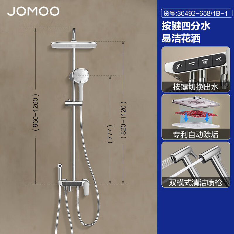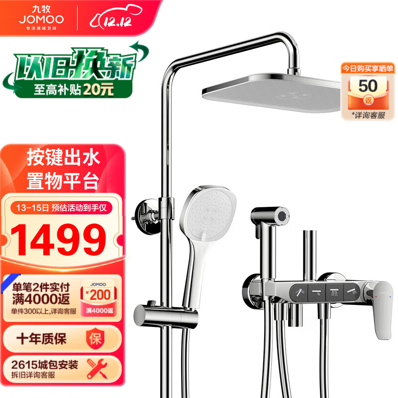 九牧(JOMOO)花洒套装 按键四分水大流量顶喷除垢置物喷枪36492-658/1B-1价格:1339.00元!