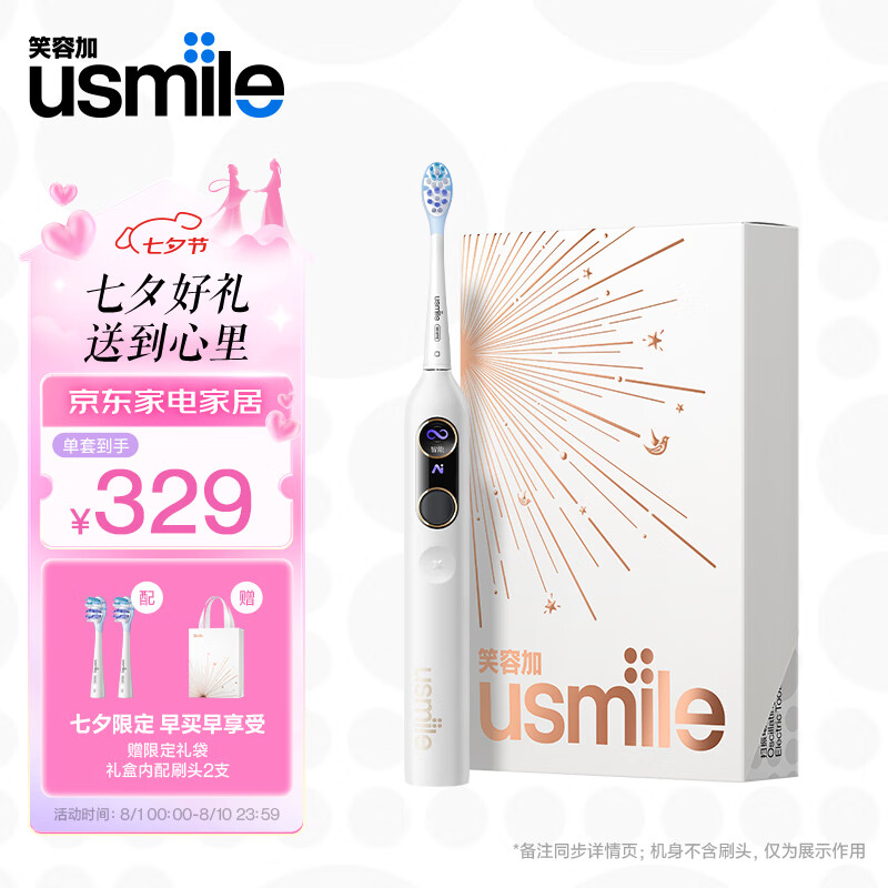 usmile 笑容加电动牙刷 成人声波震动电动牙刷 情侣款送男友/送女友 Y10PRO水白色 七夕情人节礼物价格:409.00元!