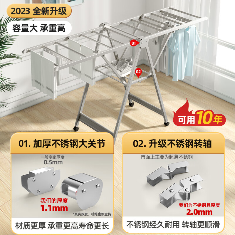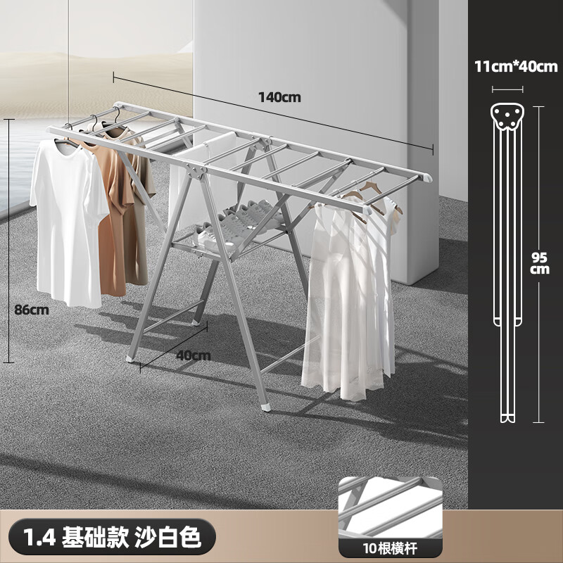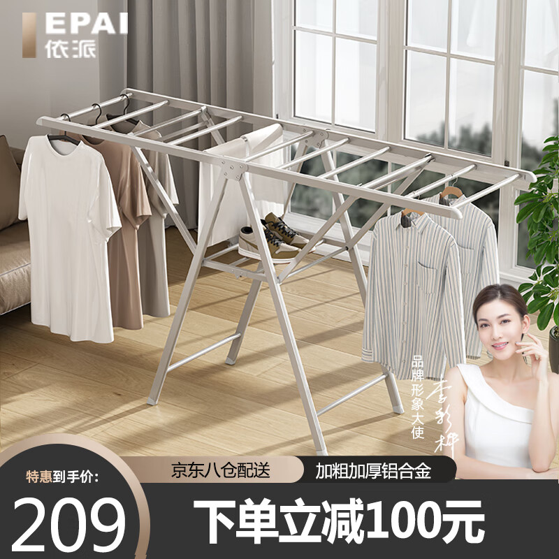 依派(IEPAI)落地晾衣架折叠阳台挂衣晒被晾衣杆铝合金晒衣服翼型折叠架1.4米价格:309.00元!