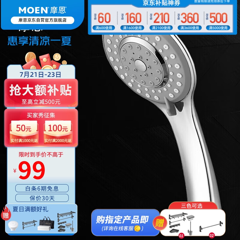 摩恩(MOEN)淋浴花洒卫浴手持花洒喷头莲蓬头三功能超薄节水10530EC价格:99.00元!