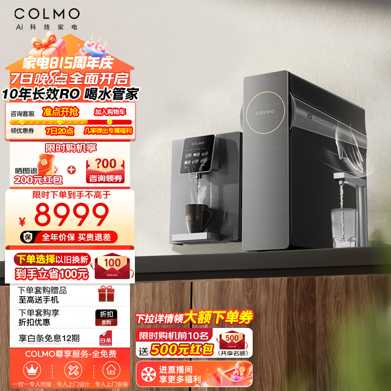 COLMO净水器套装B159+RA08 10年RO反渗透净水机 挥手智控双出水智能龙头 六档控温管线机价格:8999.00元!
