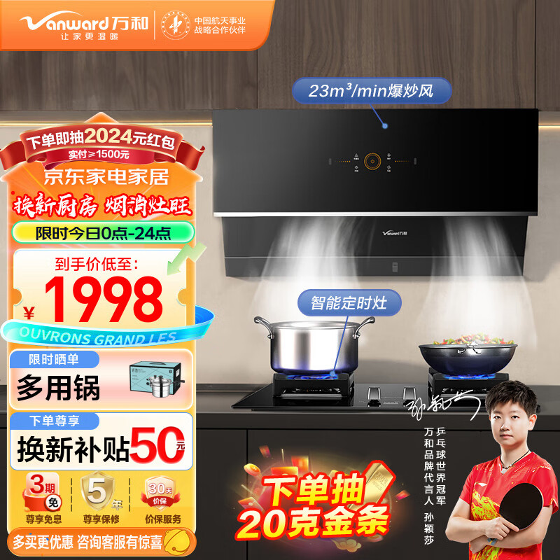万和(Vanward)侧吸式家用抽油烟机 燃气灶具烟灶套装 23风量挥手智控 自动清洗 烟灶套餐WJ760+T9L96(天然气)价格:1998.00元!