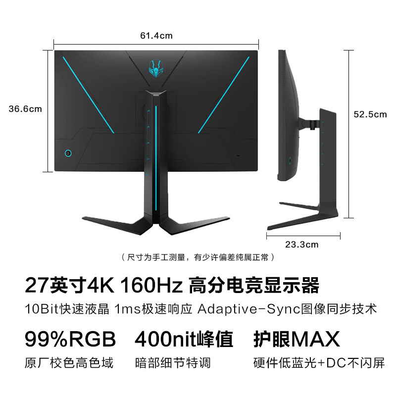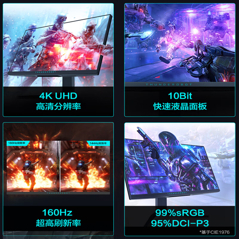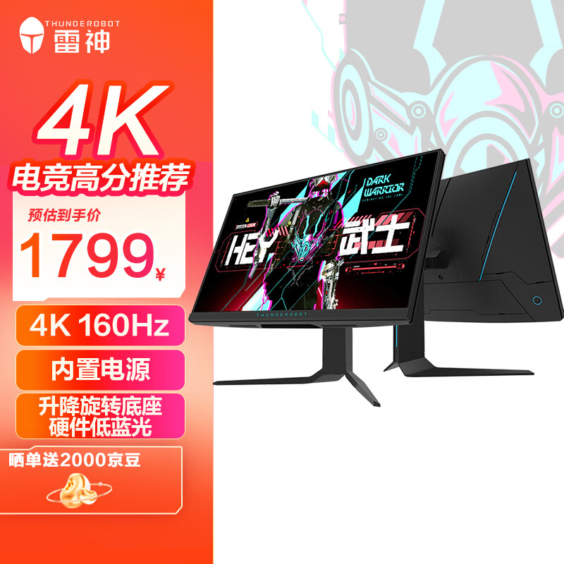 雷神 黑武士 27英寸4K 160Hz Fast IPS 1ms HDR400nit 快速液晶升降旋转4K电竞游戏显示器DU27F160L价格:1688.00元!