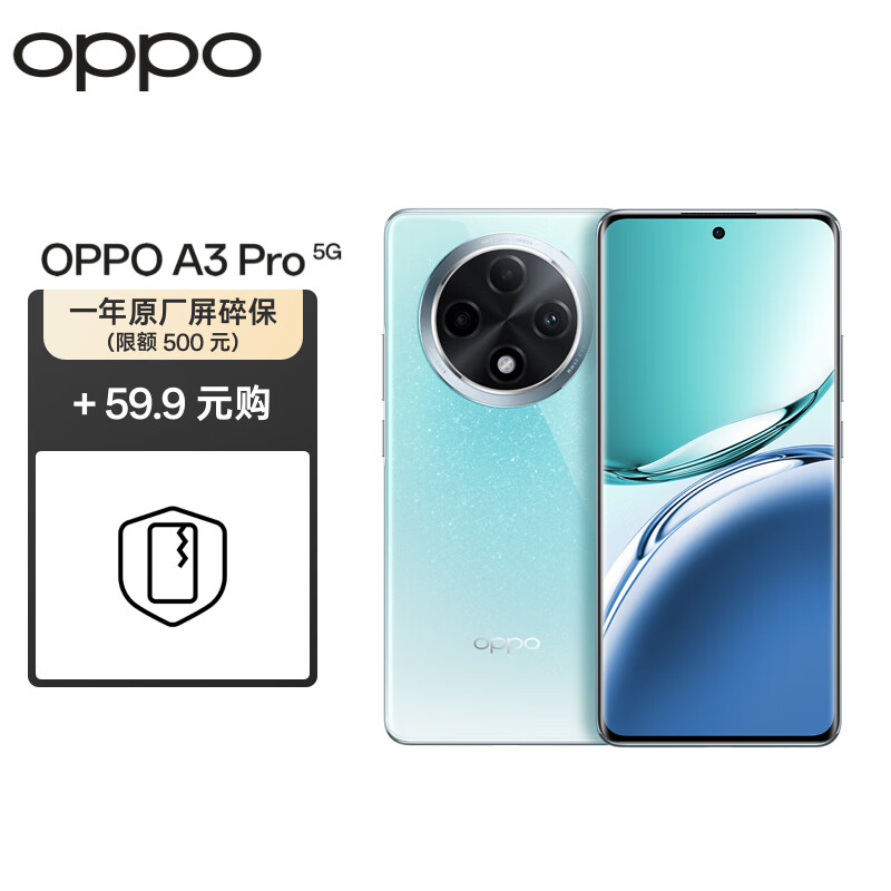OPPO A3 Pro 8GB+256GB 天青 耐用战神 满级防水 360°抗摔 大电池5G手机【限额一年屏碎保套装】 价格:2058.90元!