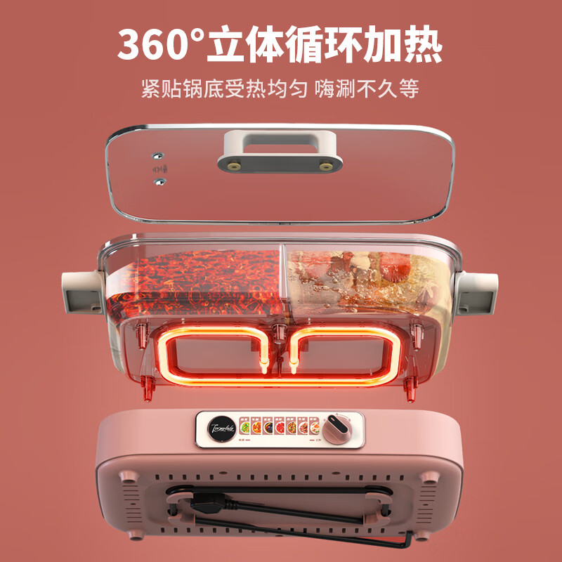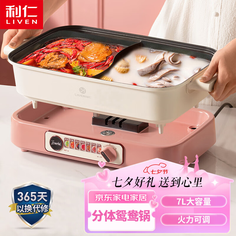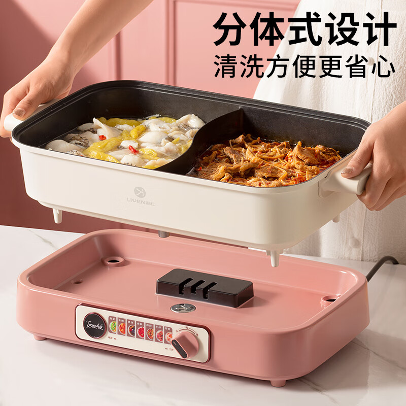 利仁(Liven)鸳鸯锅电火锅专用锅电煮锅电锅多功能锅多用途料理锅分体式家用电热锅火锅锅7升大容量 DHG-700BY价格:219.00元!