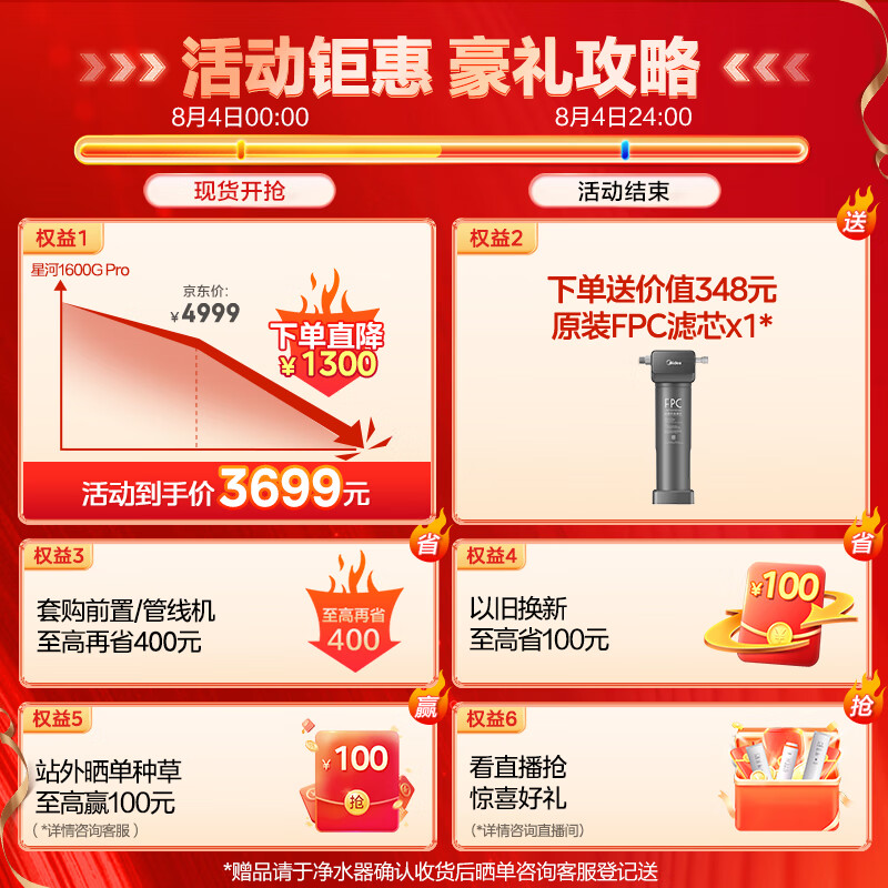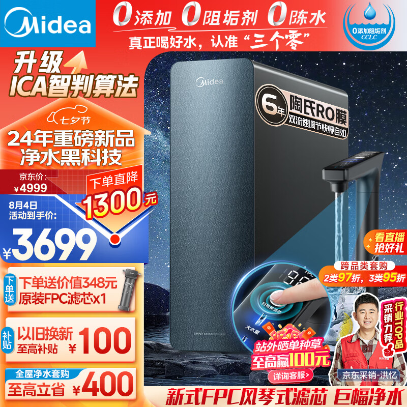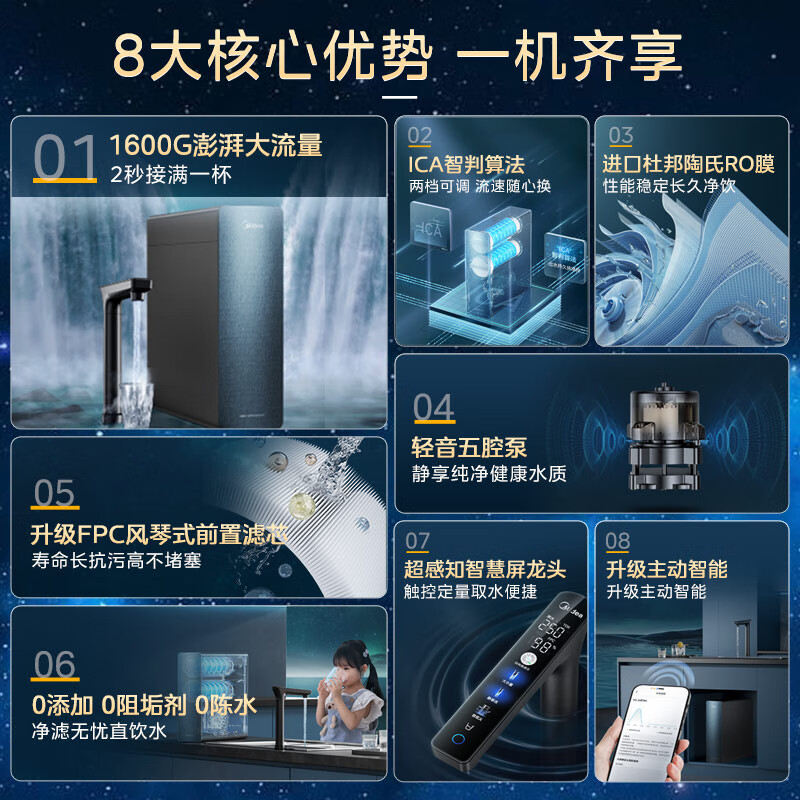 美的(Midea)净水器家用大通量净水机星河1600G 6年长效陶氏RO膜鲜活零陈水 反渗透净水器厨下式直饮4L/分价格:3699.00元!