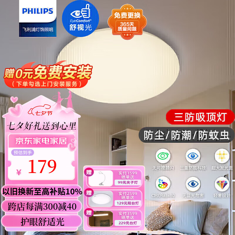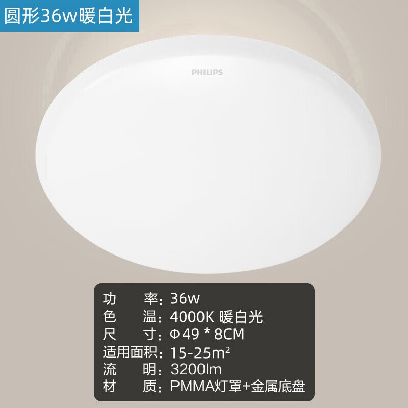 飞利浦(PHILIPS)led吸顶灯卧室灯客厅灯书房餐厅儿童房简约灯饰灯具36W40K恒妍价格:179.00元!