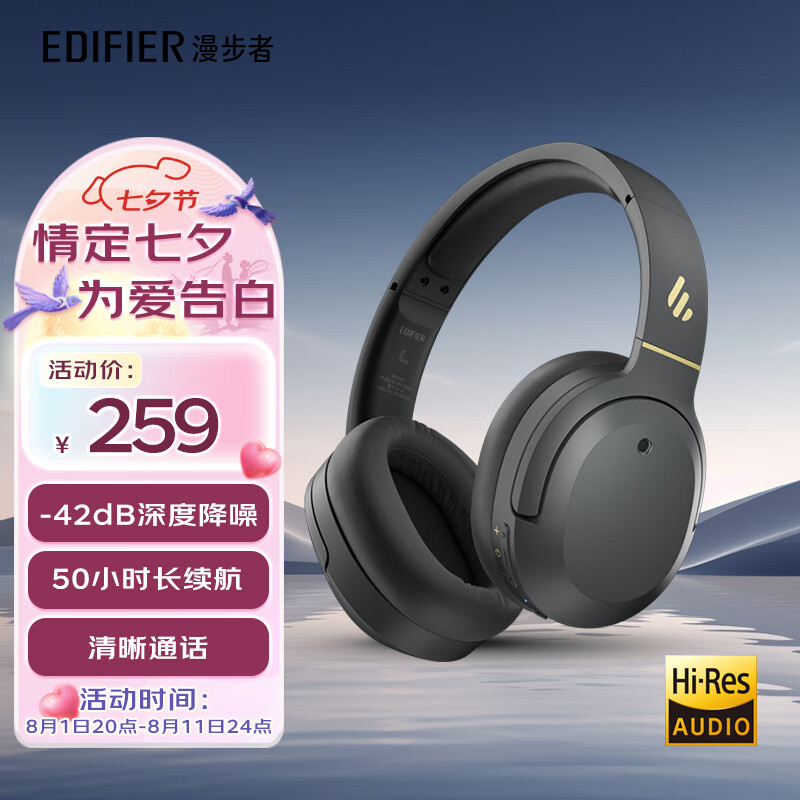 漫步者(EDIFIER)W820NB经典版 头戴蓝牙主动降噪耳机 金标认证 蓝牙5.2 手机电脑笔记本耳机 典雅灰 七夕礼物价格:259.00元!