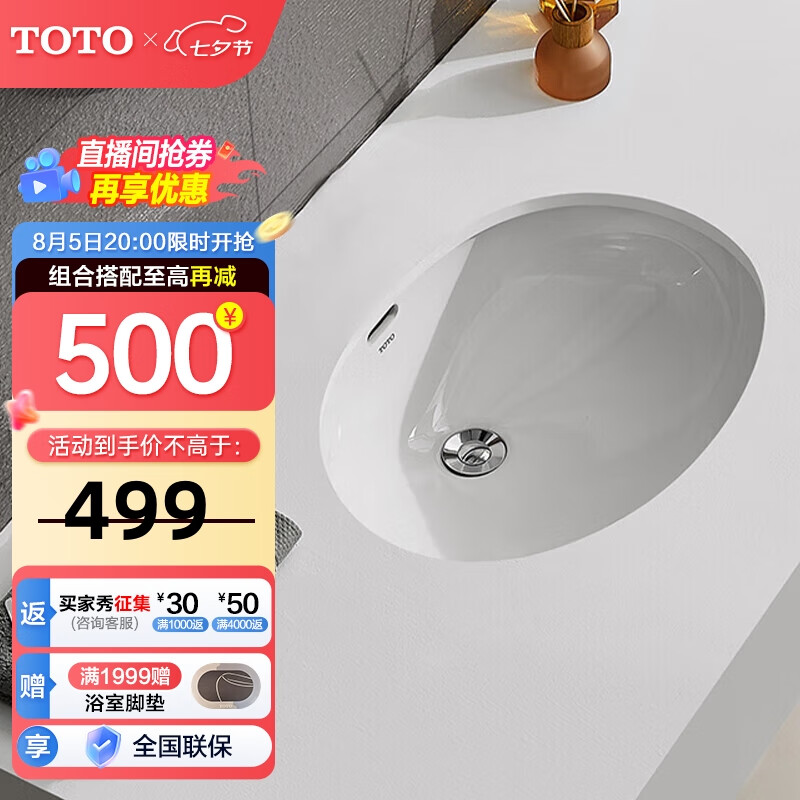 TOTO卫浴智洁陶瓷面盆椭圆方形洗脸盆台下盆LW546B(07)价格:639.00元!