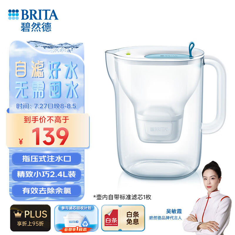 碧然德(BRITA)设计师滤水壶2.4L过滤净水器净水壶style Cool壶价格:139.00元!