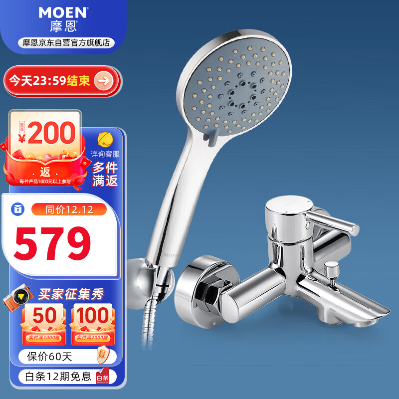 摩恩(MOEN)淋浴花洒套装 升级款水呼吸五功能手持花洒喷头浴缸龙头套装价格:679.00元!