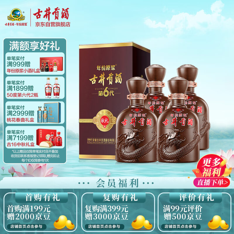 古井贡酒年份原浆 献礼版 浓香型白酒 40.6度425ml*4瓶 整箱装价格:378.79元!