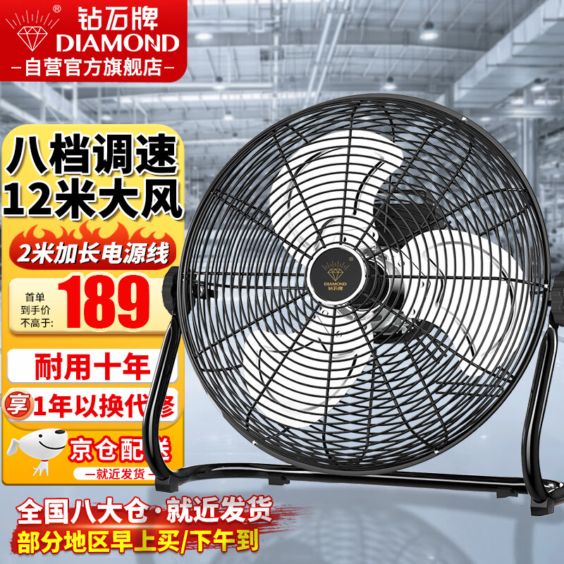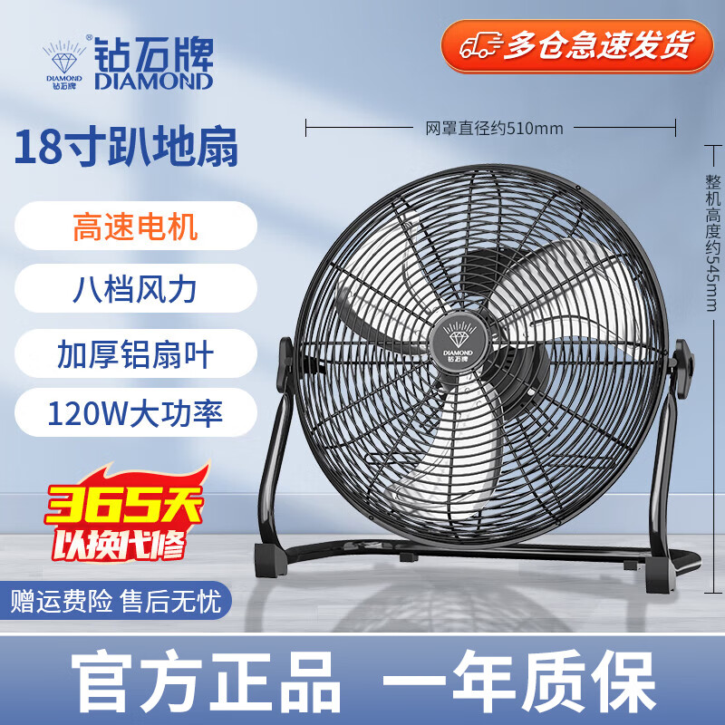 钻石牌(DIAMOND) 台式趴地扇工业风扇强力趴地风扇大风量商用地扇台地扇大功率工厂坐地落地电风扇 EF-45L雅典黑(18寸)价格:209.00元!