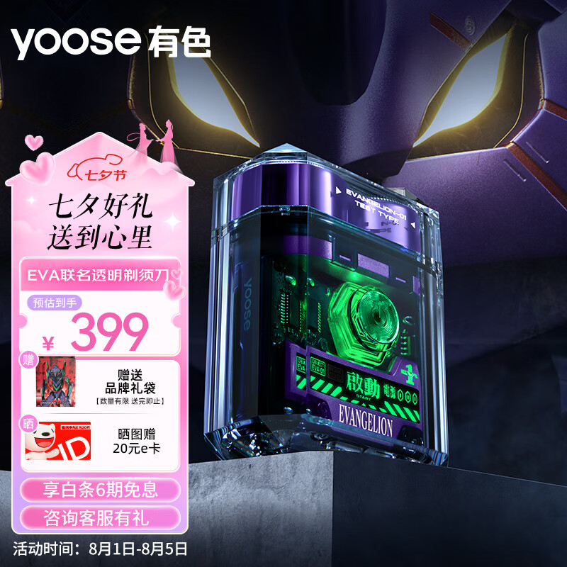 有色(yoose)电动剃须刀 潮流便携迷你刮胡刀 透明机身 生日七夕情人节礼物送男朋友老公 EVA初号机联名款价格:598.00元!