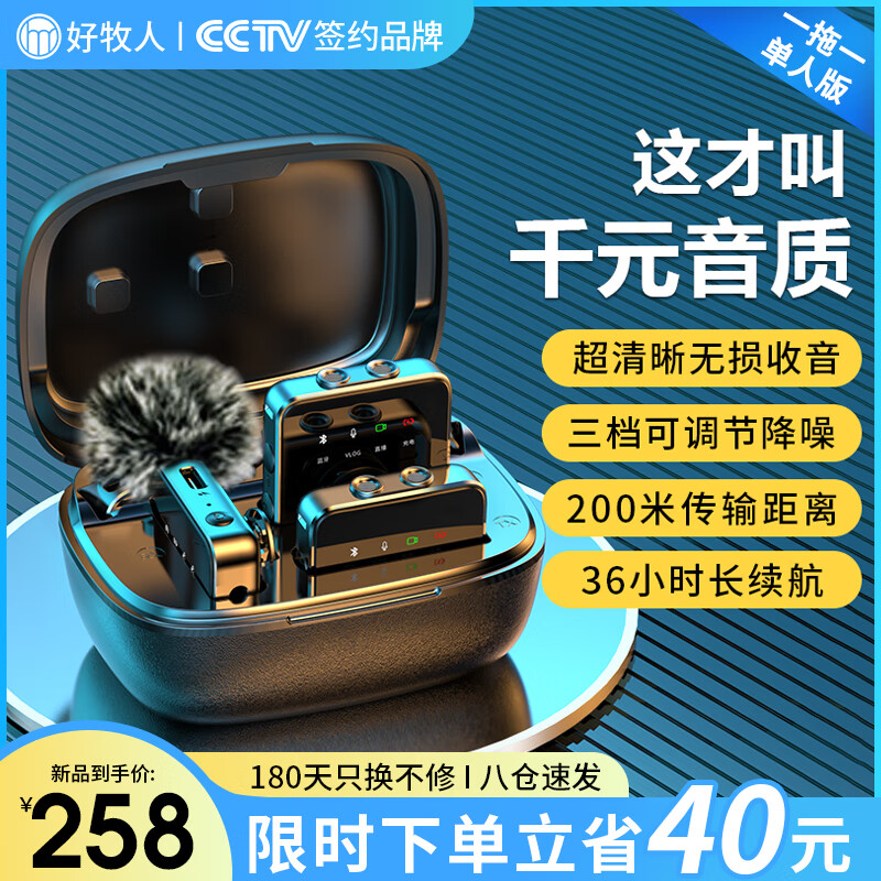 好牧人无线麦克风领夹麦收音器直播专用录音设备声卡户外降噪抖音主播唱K歌拍视频小蜜蜂话筒手机电脑价格:255.00元!