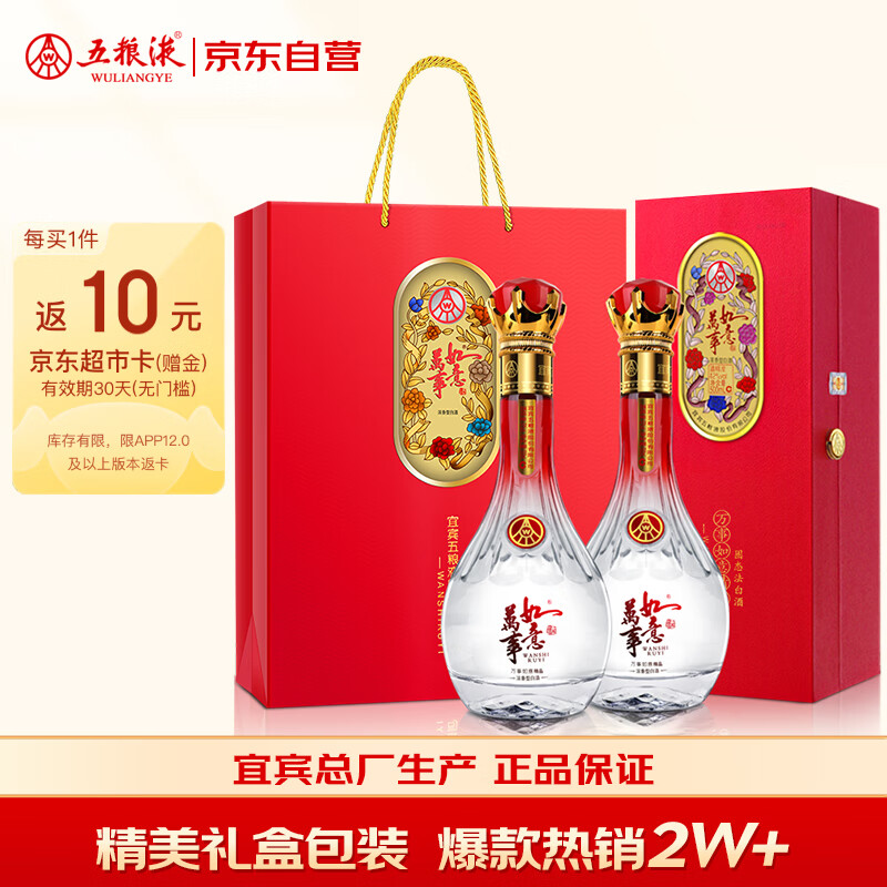 五粮液股份 中秋送礼 万事如意精品42度500ml*2瓶 固态法浓香型白酒价格:410.00元!