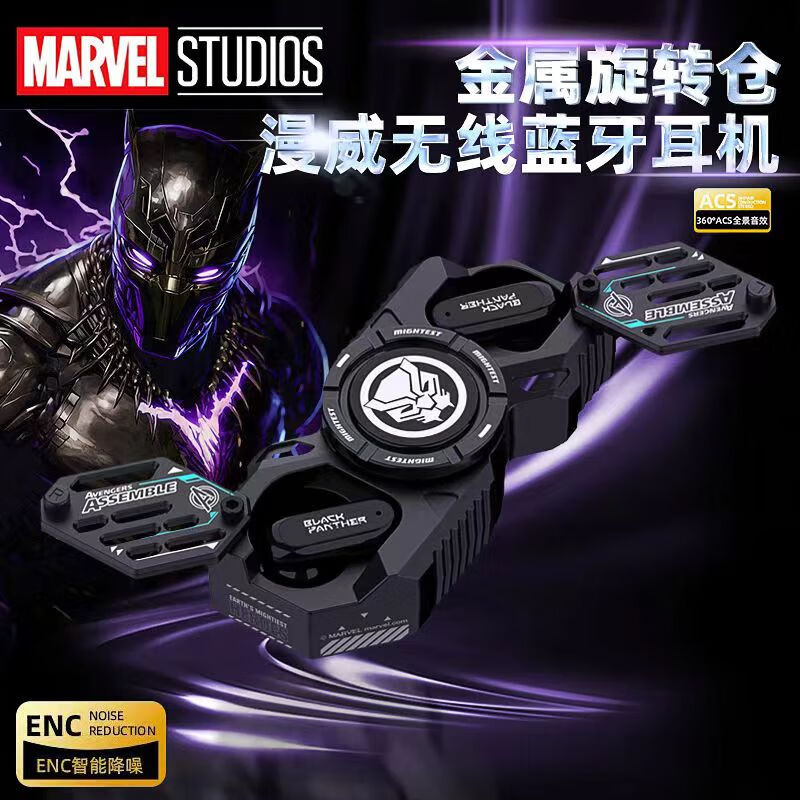 迪士尼漫威真无线蓝牙耳机游戏音乐双模式长续航低延迟锌合金充电舱智能降噪DW-G11耳机黑豹黑价格:199.00元!