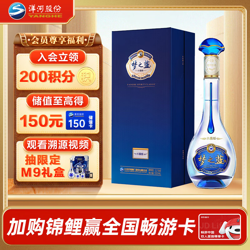 洋河 梦之蓝M3水晶版 52度 550ml 单瓶装 绵柔浓香型白酒价格:698.00元!