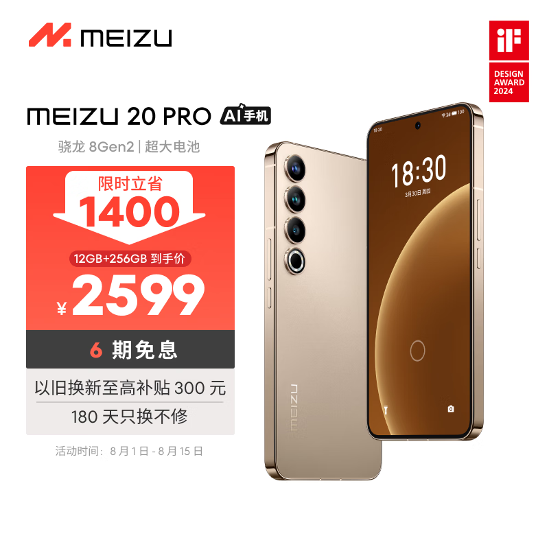 魅族(MEIZU)20PRO骁龙8Gen2 Flyme系统 超大电池 50W无线充电 5G游戏学生拍照 领克手机域 朝阳金 12+256GB价格:2599.00元!