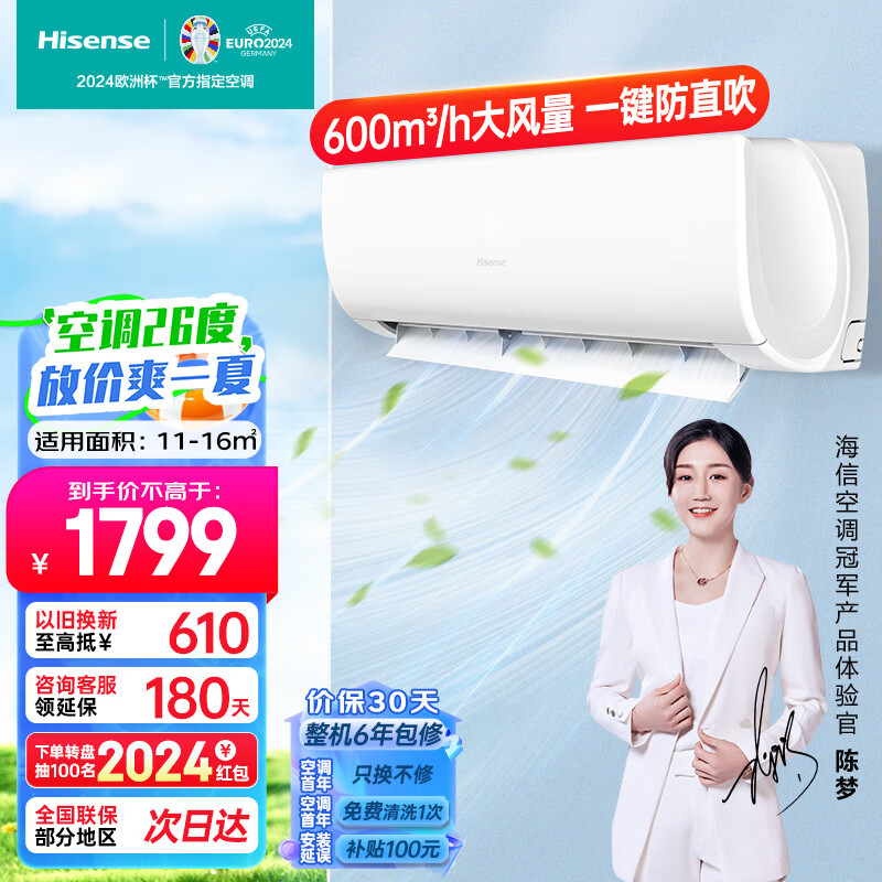 海信(Hisense)大1匹 速冷热 新三级能效变频超大风量防直吹静音智能APP控制 壁挂式卧室空调挂机 KFR-26GW/E25A3价格:1799.00元!