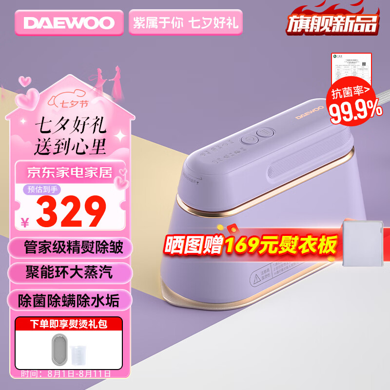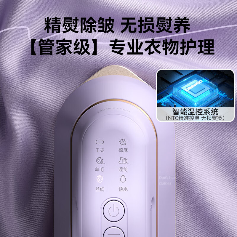 大宇(DAEWOO)【精熨护衣】手持挂烫机家用熨烫机蒸汽电熨斗 旅游出差便携式小型除菌除螨熨斗HI-029PRO灰藕紫价格:359.00元!