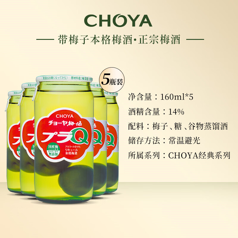 CHOYA俏雅蝶矢 带梅子本格梅酒 青梅酒 便利店调酒小酒160ml*5送礼礼物价格:288.00元!
