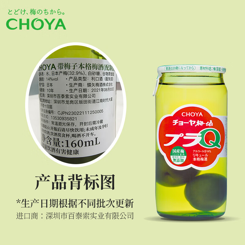 这款CHOYA160ml的朋友有点多,这回就给大家介绍下,这款才出不久,特别的受欢迎,客服态度很好,及时解答了我的问题,有种被关心和重视的感觉。