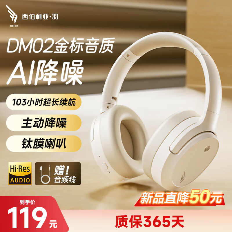 西伯利亚(XIBERIA)羽DM02主动降噪金标认证无线头戴式蓝牙耳机超长续航降噪音乐游戏运动耳机云烟白价格:179.00元!