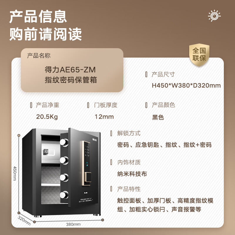 大家看得力AE65-ZM保险柜/箱真实感受评测?分享三个月真相分享?