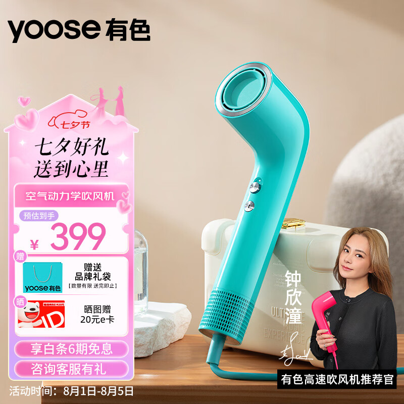 有色(yoose)高速吹风机 家用大风力速干负离子护发吹风筒 生日七夕情人节礼物送女友送男友 S2 蓝色价格:649.00元!