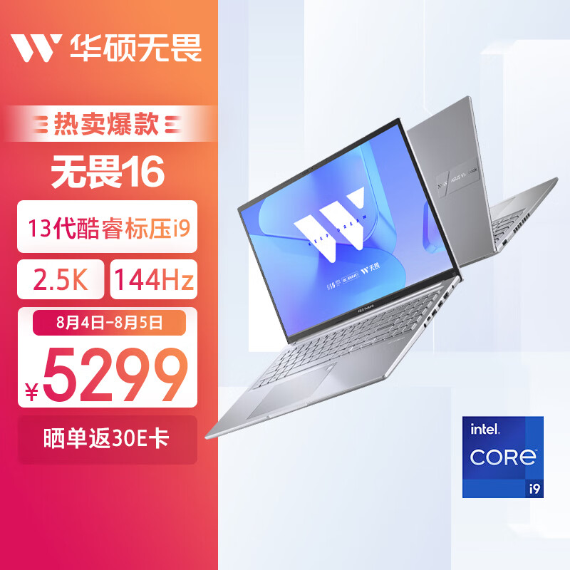 华硕无畏16 英特尔标压i9 16英寸2.5K 144Hz高刷屏高性能轻薄商务办公笔记本电脑(i9-13900H 16G 1T)价格:5299.00元!