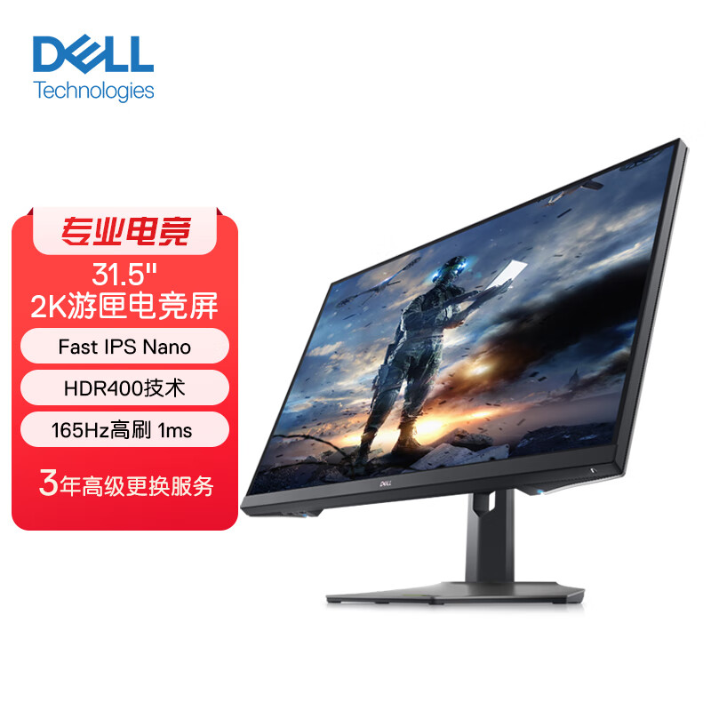 戴尔(DELL)31.5英寸 2K显示器 Fast IPS 165Hz 高刷 1ms HDR400 FreeSync 防蓝光 游匣 游戏电竞 G3223D价格:3099.00元!