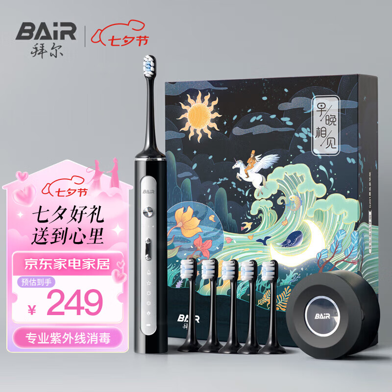 拜尔G2s pro智能消毒电动牙刷软毛成人震动充电智能声波学生情侣全自动男士女送朋友礼盒装 七夕礼物价格:259.00元!