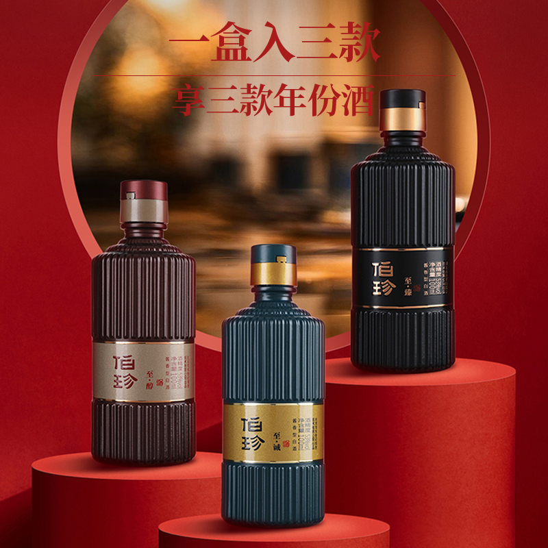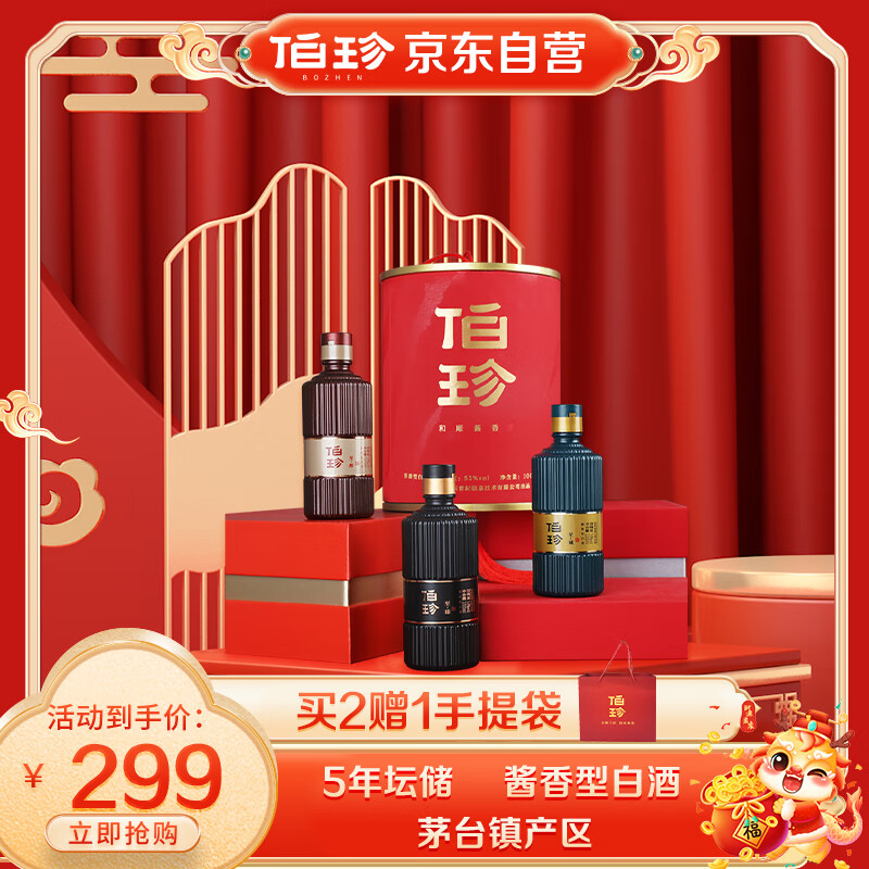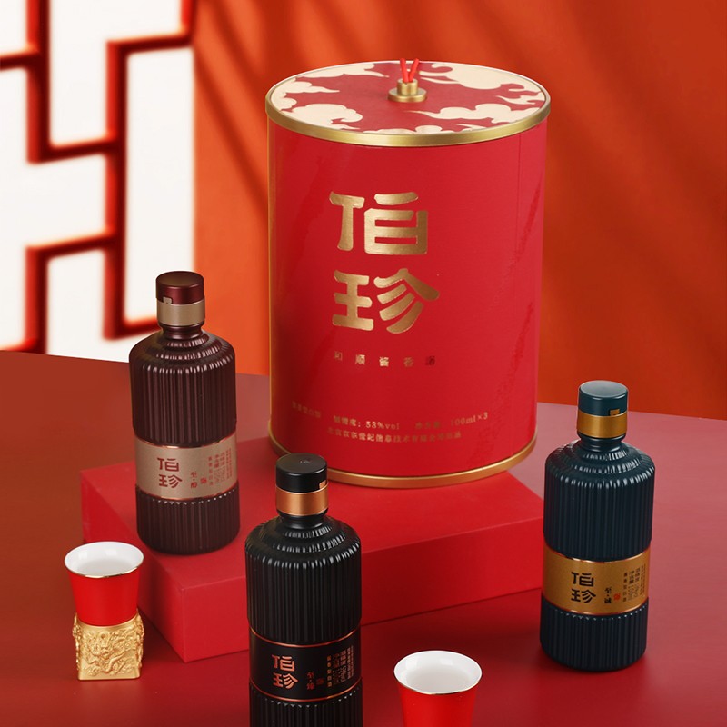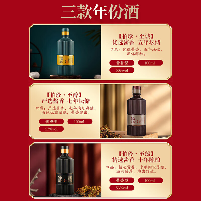 伯珍 国风灯笼 酱香型白酒 53度 100ml*3瓶 小酒礼盒装 茅台镇产区价格:99.00元!