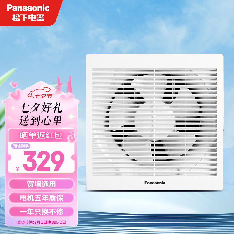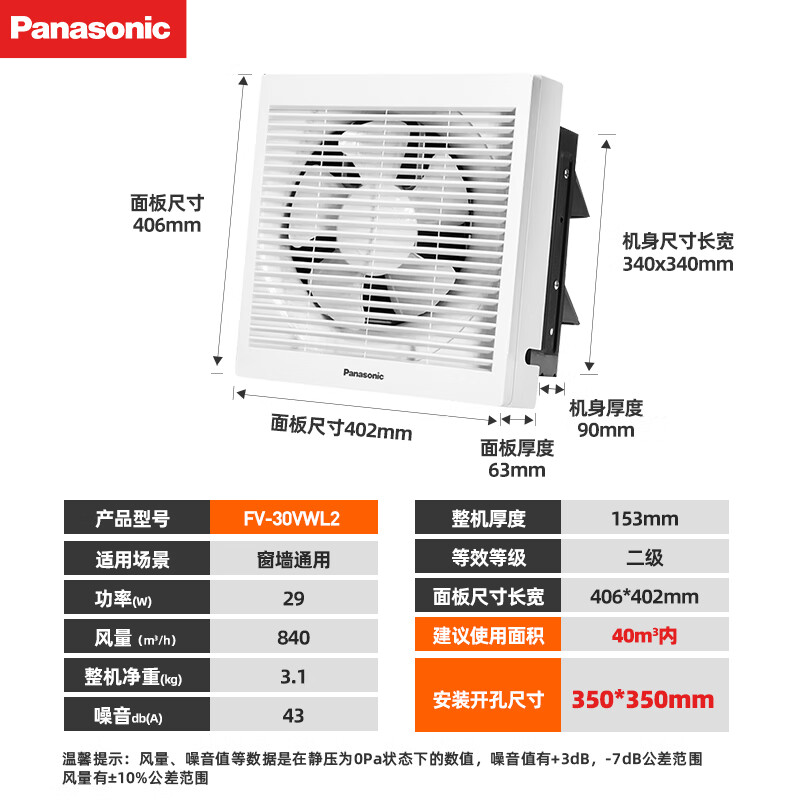 松下(Panasonic)换气扇窗墙式排气扇排风扇卫生间厨房抽风扇浴室排风机 12寸FV-30VWL2【方孔350*350】价格:359.00元!
