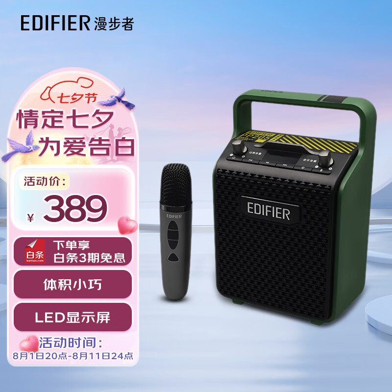 漫步者(EDIFIER)PP205无线版手提便携蓝牙音箱 ktv音响 户外K歌音箱 商超导购 广场舞音响教学扩音器 军绿色价格:389.00元!