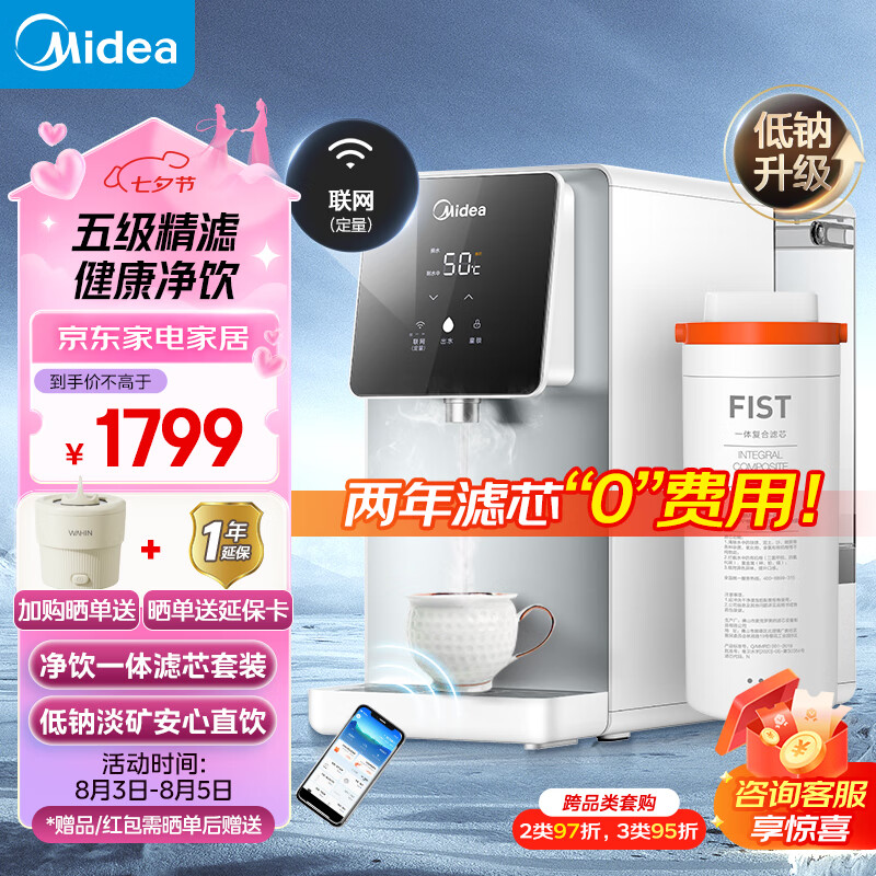美的(Midea)白泽Pro台式净水器净饮机饮水机即热式直饮机净饮一体机远程智控RO反渗透低钠 JR2183T-RO滤芯套装价格:1799.00元!