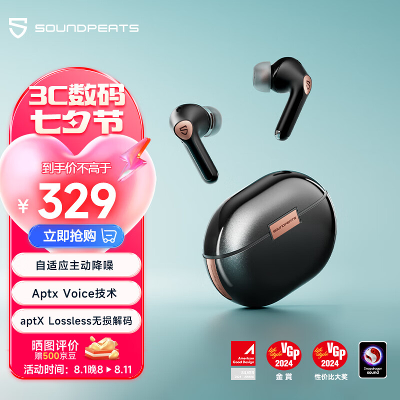 泥炭(SoundPEATS)【七夕情人送礼】Air4 Pro 主动降噪蓝牙耳机 自适应主动降噪 晓龙畅听入耳式 蓝牙5.3 跃影黑价格:329.00元!