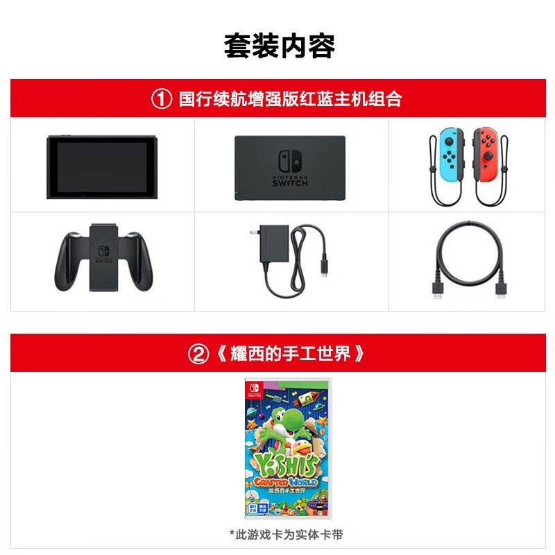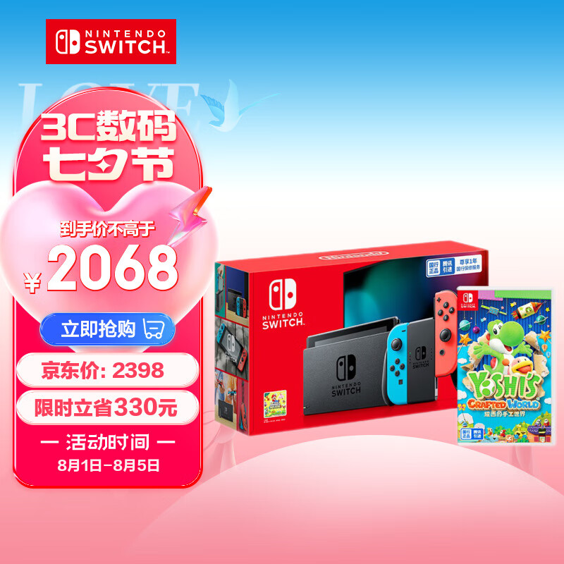 Nintendo Switch任天堂 国行续航增强版红蓝游戏主机 & 耀西的手工 卡带七夕情人节礼物价格:2068.00元!