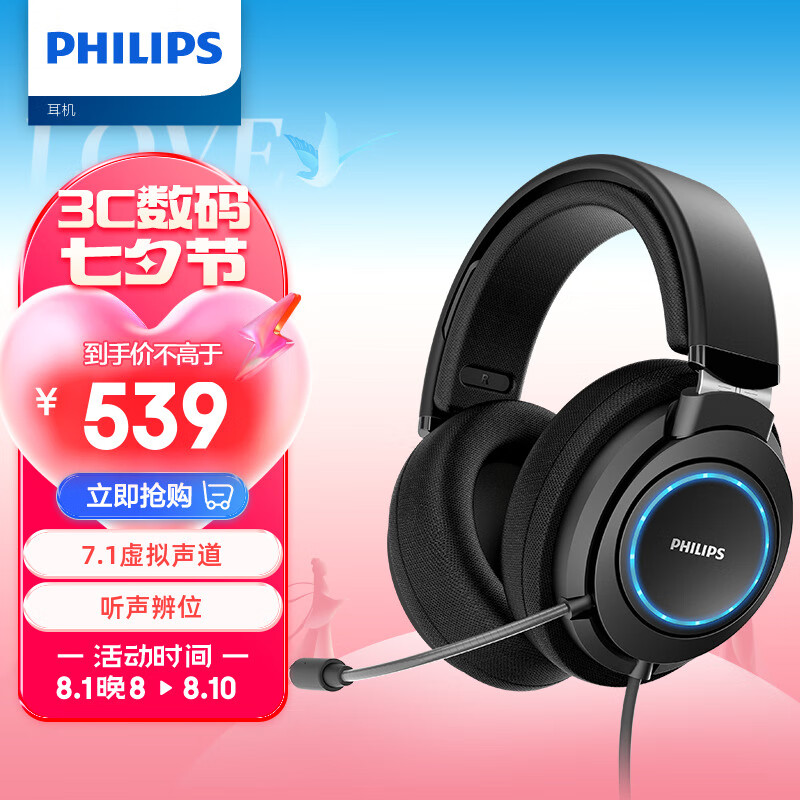 飞利浦(PHILIPS)SHP9500游戏版G6105 HiFi级游戏耳机 7.1虚拟环绕 炫彩呼吸灯 头戴式电脑电竞线控带麦耳机价格:539.00元!