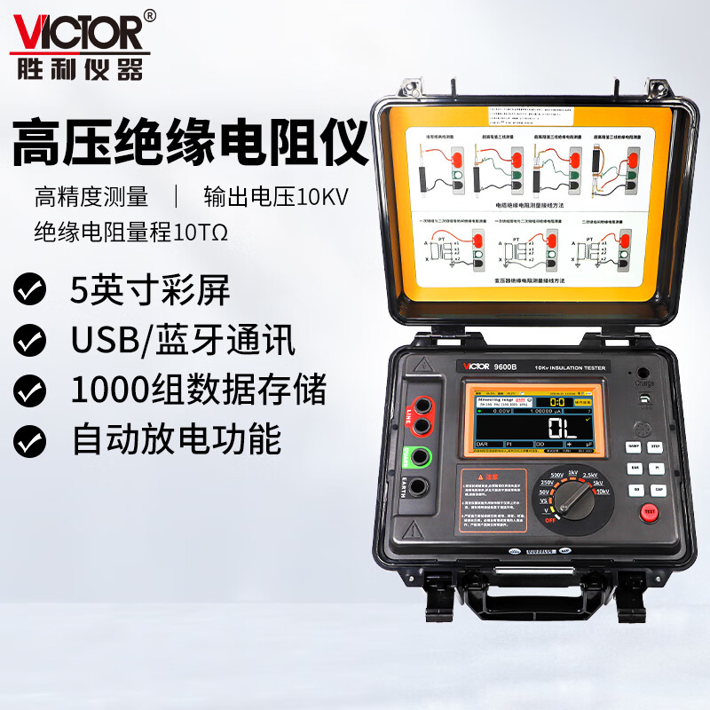 胜利仪器(VICTOR)高压绝缘电阻测试仪 自动放电功能 兆欧表 电阻测试器 VC9600B价格:3828.00元!