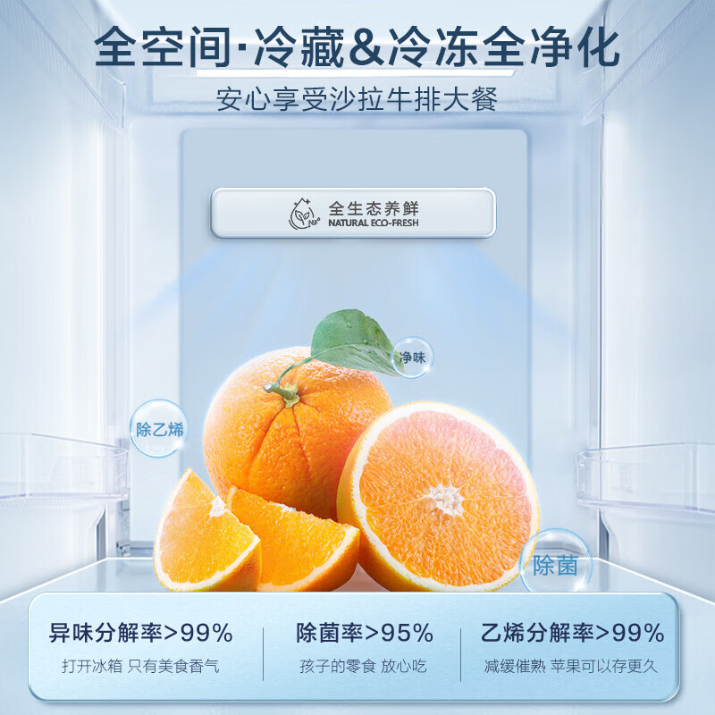 容声(Ronshen)【离子净味系列】432升冰箱一级双变频风冷无霜十字对开门干湿分储超薄家用BCD-432WD13FPA价格:2799.00元!